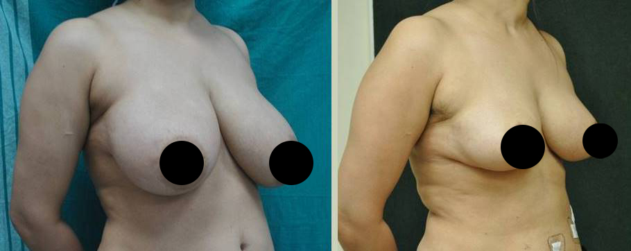 Most women opting for breast reduction surgery want the maximum reduction possible. No one wants to undergo a surgery and find out that the problems due to heaviness remain. The cosmetic surgeon will remove the maximum possible volume of breast tissue. 50-60 % size reduction is a reasonable expectation. Certain amount of breast tissue has to be preserved to maintain good breast shape and also to have normal blood flow and sensation in nipple and areola. Most women who had breast reduction by Dr. Hari Menon have reported complete relief from heavy breasts and having good breast shape and size too.